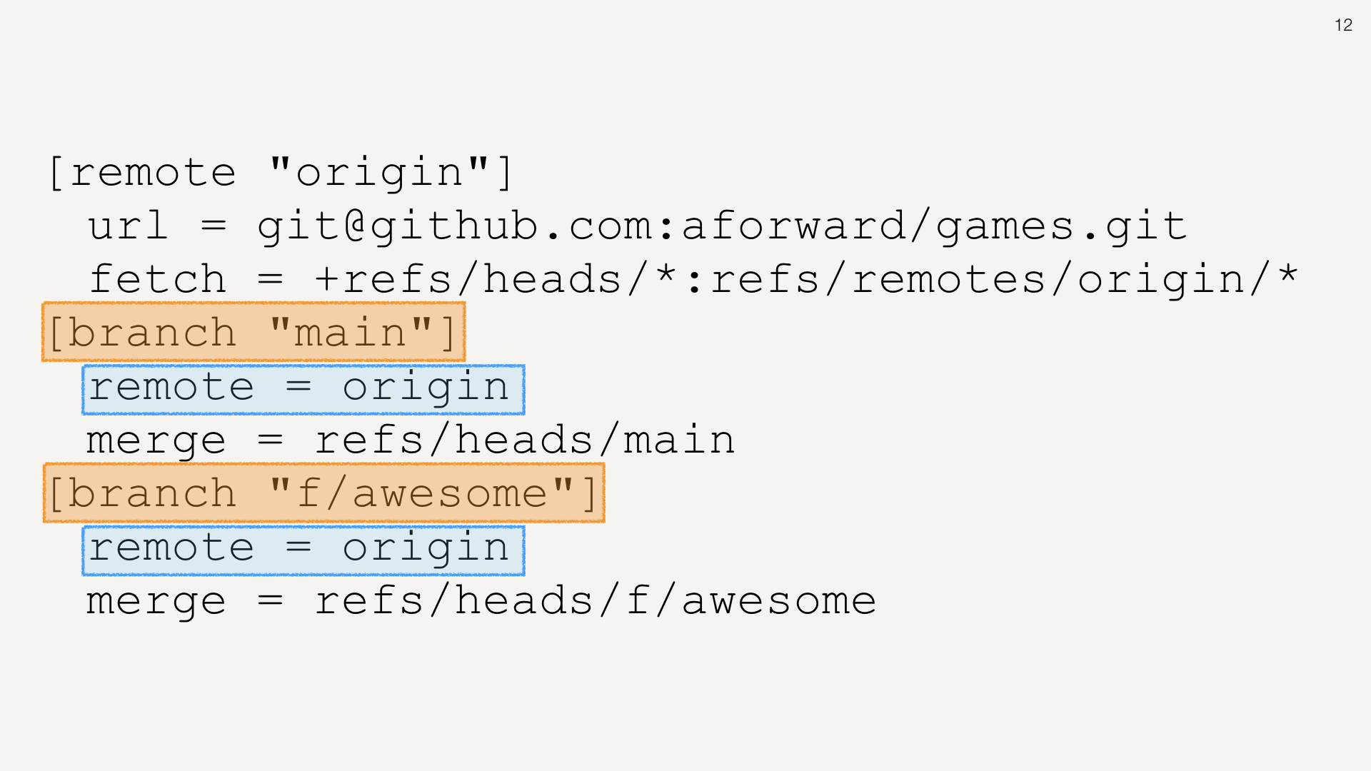 In this repo, we are tracking two remote branches main and f/awesome